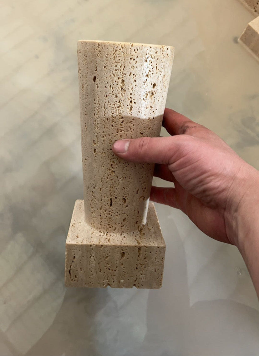 Crafted from hand-polished travertine, it showcases a unique raw texture that embodies wabi-sabi beauty