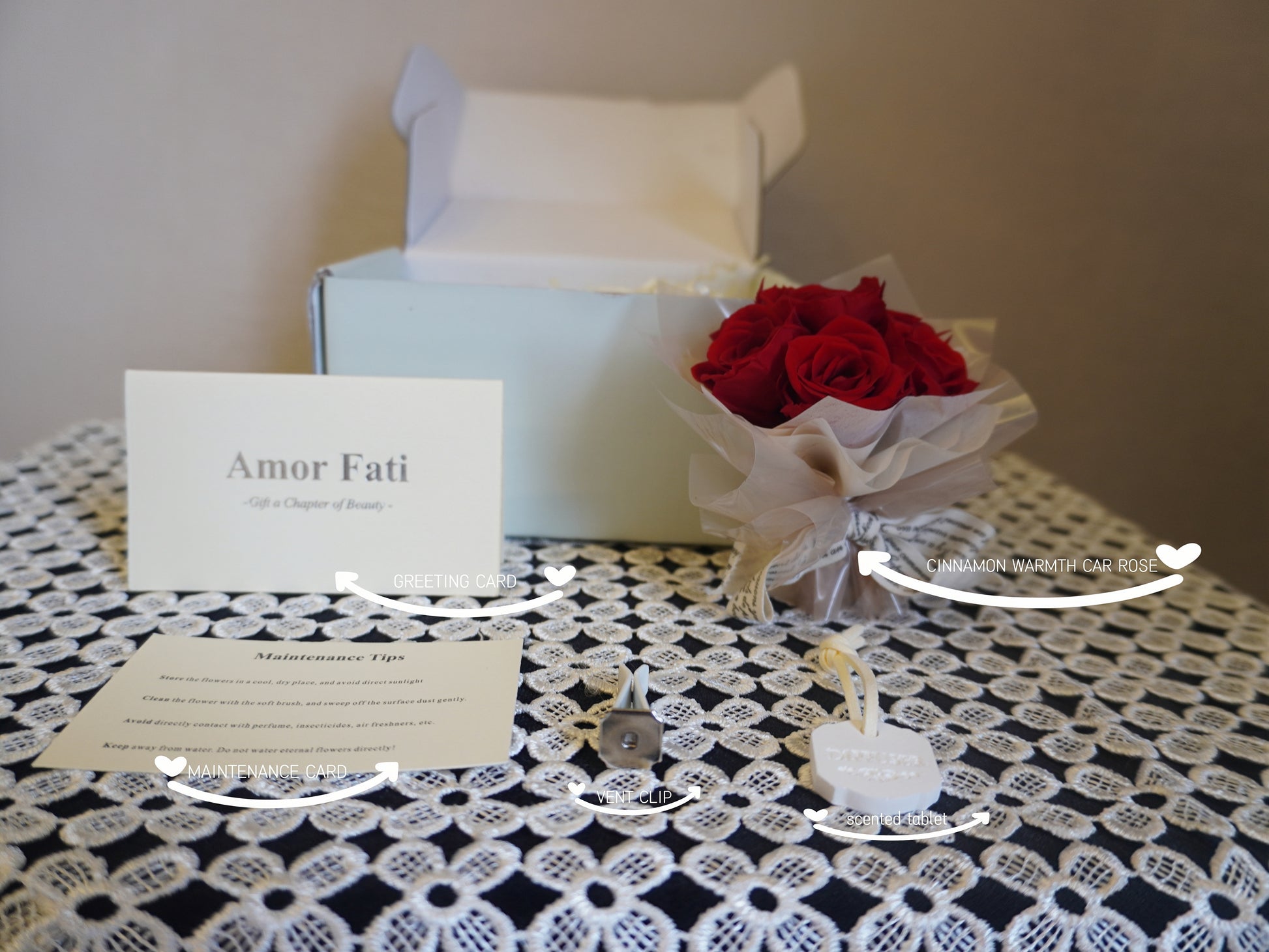 Transform your car's interior with our Cinnamon Warmth Car Rose. These exquisitely preserved blooms, boasting rich cinnamon and red tones, not only serve as a charming decor but also emit a subtle, comforting aroma. Let every journey be wrapped in warmth and style, as if embraced by a gentle, fragrant hug